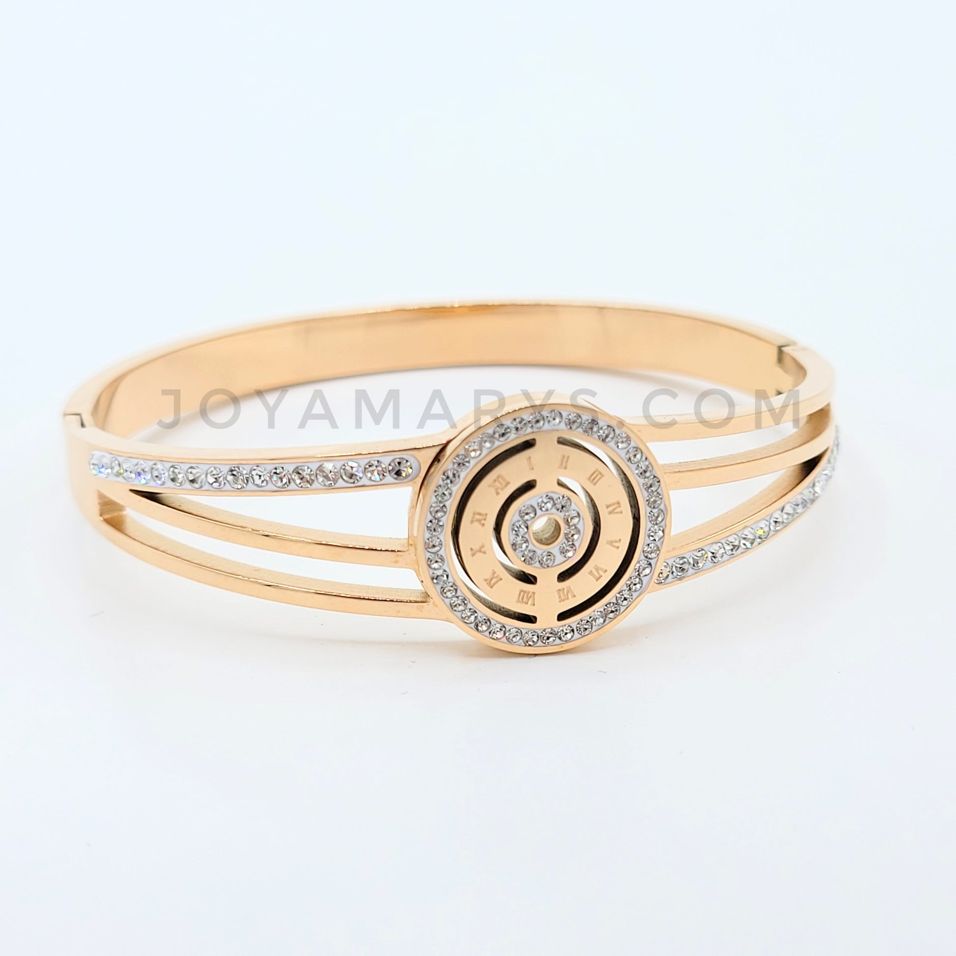 BRS-40 Pulsera Brazalete Números Romanos Oro Rosa con Piedras Blancas