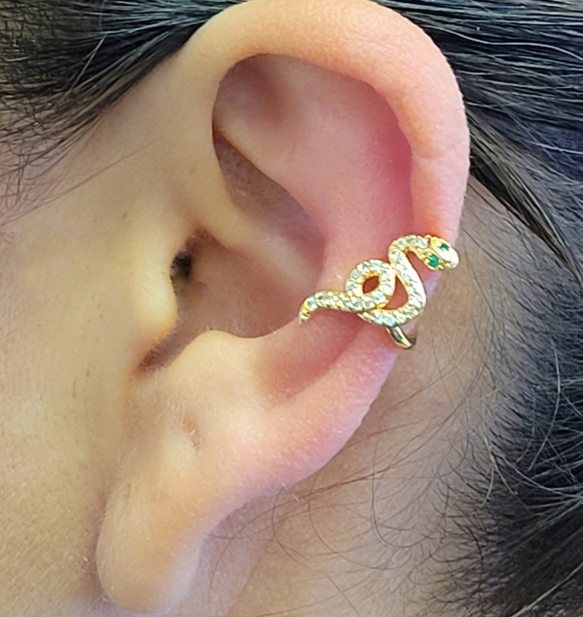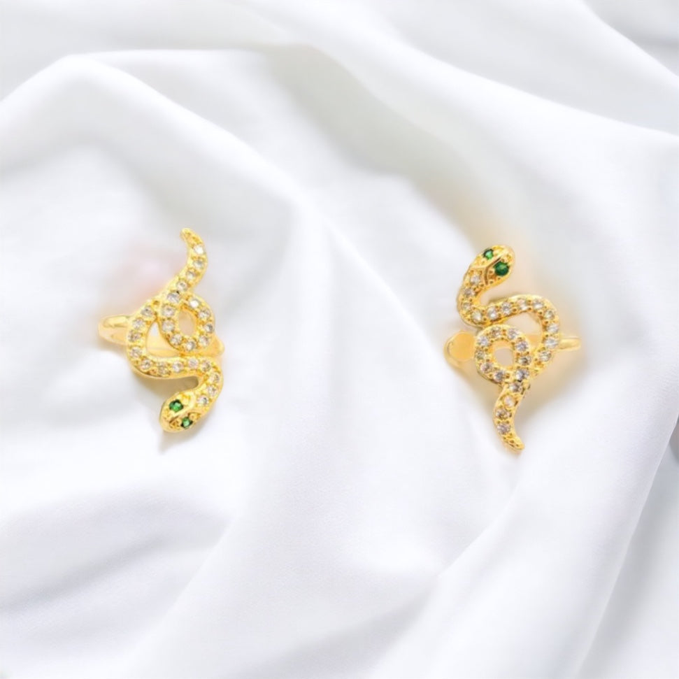 ER-424 Aretes Serpiente con Piedra Blanca y Verde/Aretes Serpiente con Piedra Blanca y Verde 18k