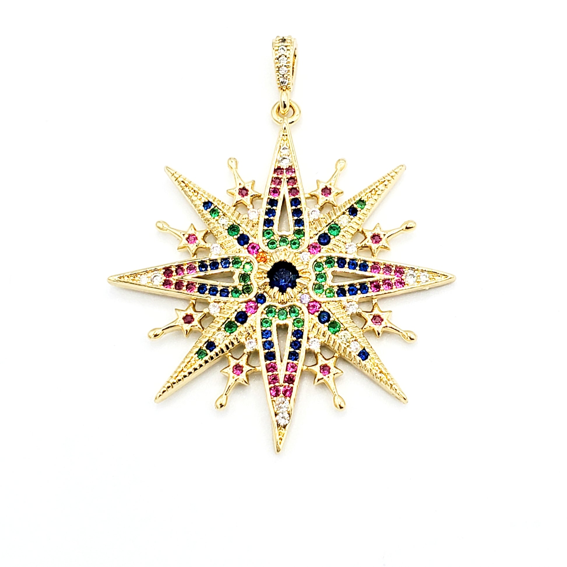 PN-955 Dije Estrella con Piedra Multicolor 4cm Incluye Cadena Mixta 18"-20"