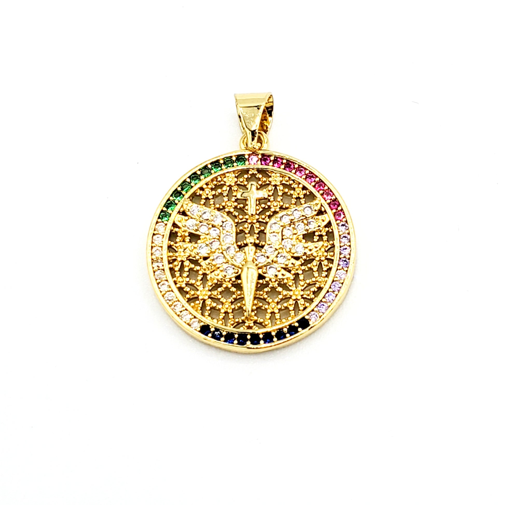PN-990 Colgante Ángel con Piedra Multicolor con Cruz 2cm Incluye Cadena Mixta 18"-20"