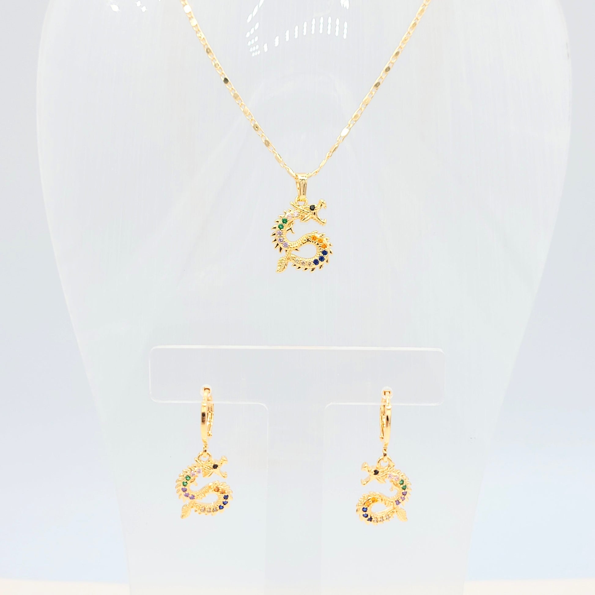 S-329 Conjunto Dragón Piedra Multicolor 18k