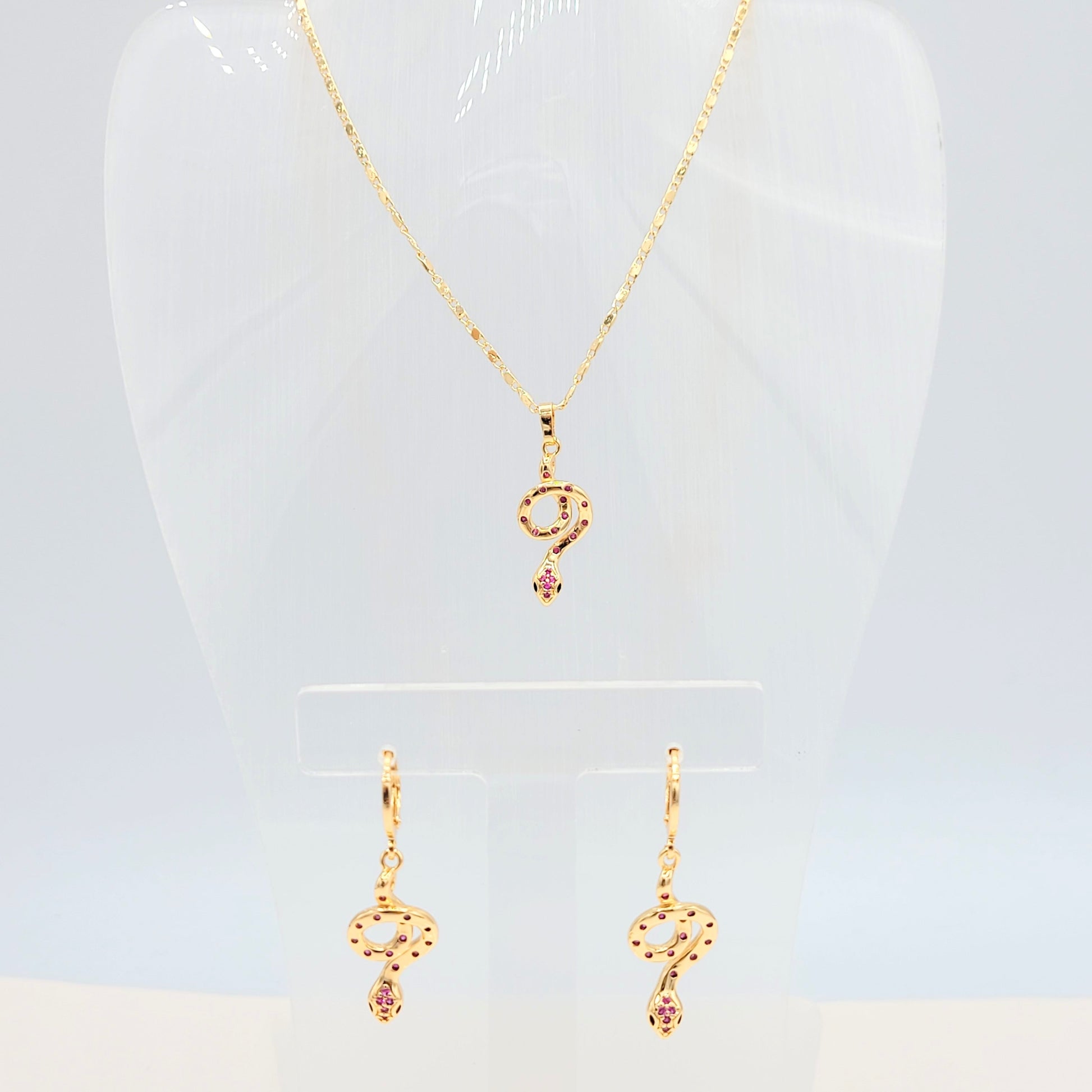 S-333 Conjunto Serpiente Piedra Roja 18k