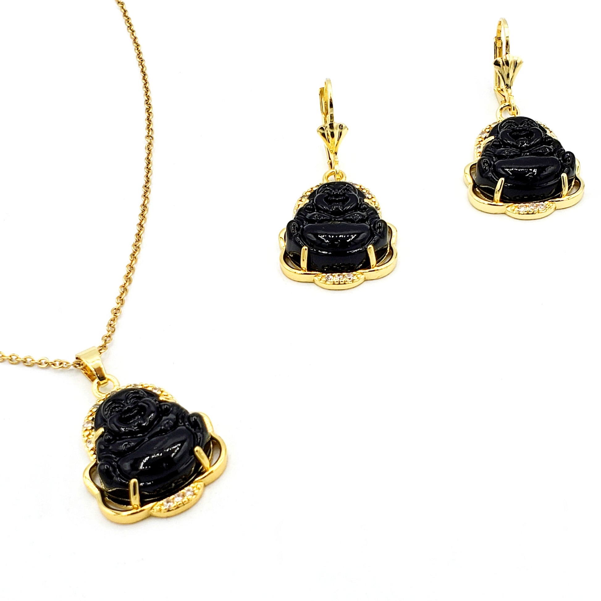 S-515 Juego Buddah color Negro con Piedra Blanca 16.5"