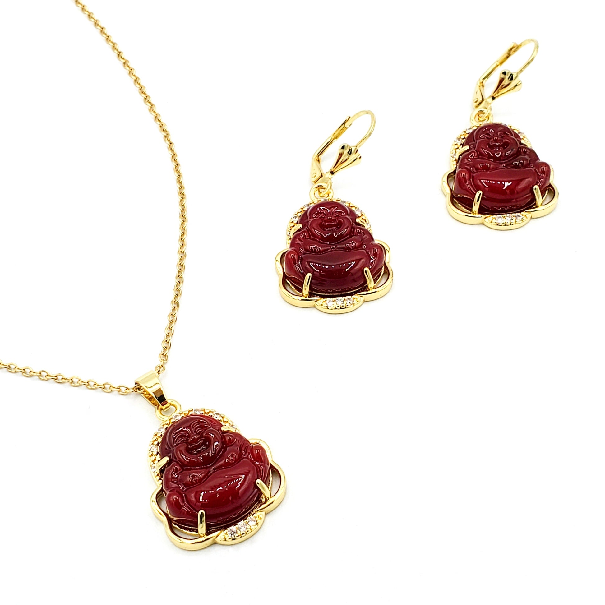 S-517 Conjunto Buddah color Borgoña con Piedra Blanca 16.5"