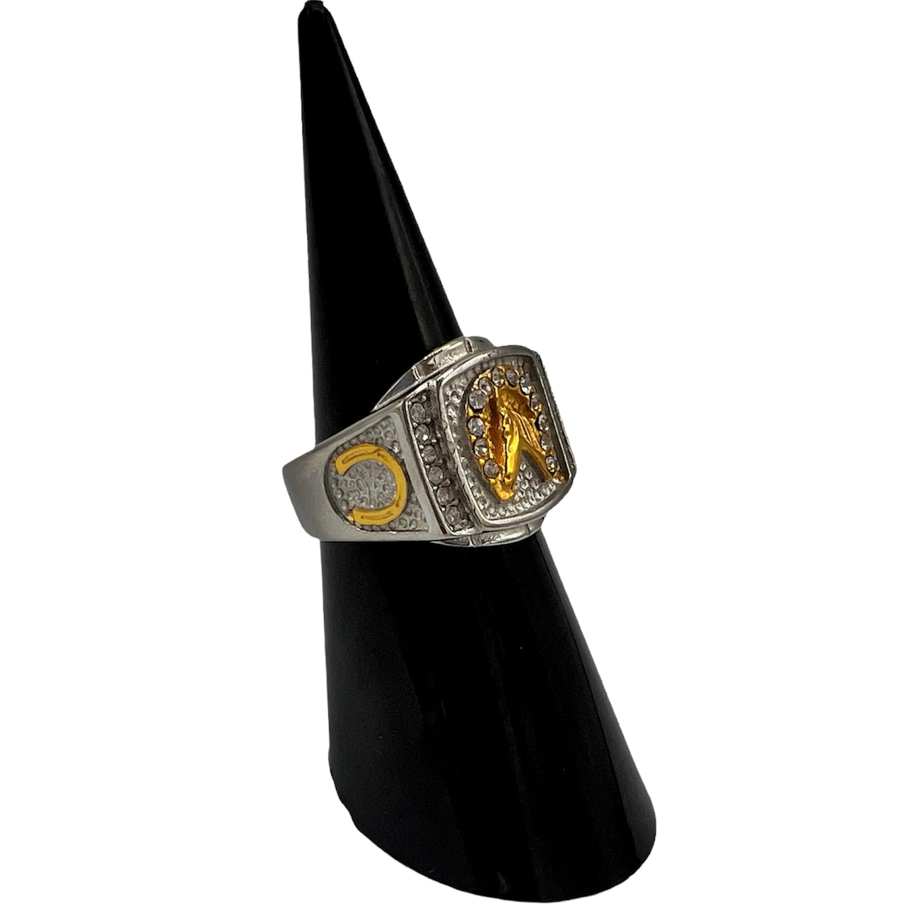 R-37 Stainless Steel Anillo Caballo/ Horse Ring, Color:Silver&Gold, Zirconia Blanca, Seleccione el Size en la Parte de Abajo donde dice Size
